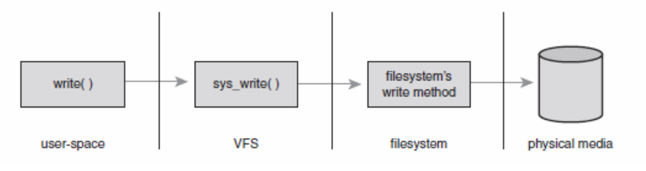 VFS는 커널에 속하는 소프트웨어 계층으로, 리눅스 표준 파일 시스템과 관련한 모든 시스템 콜을 핸들링한다. VFS의 주요 강점은, 여러 종류의 파일시스템을 사용할 수 있는 추상화된 common interfrace 를 제공한다는 것이다.